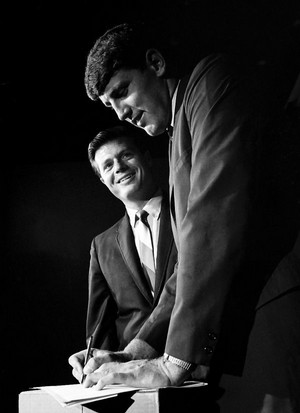 Nancy's Dad was inducted into the Hall of Fame, and here are the two kids accepting the award and I think that's DJ Fontana over on the right. Nancy's brother Louis holding up the award.